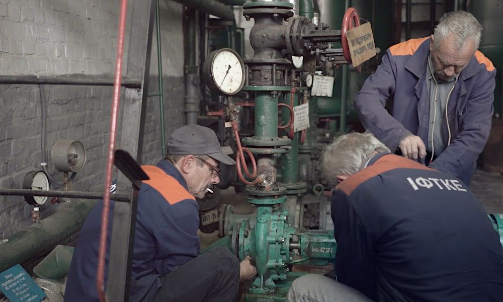 Фільм з особливою теплотою показує будні комунальників. Ось голова профспілки розкладає на комп’ютері пасьянс “Павук”, ось диспетчерка говорить до користувачів — це все реальні сюжети, не постановка. А ще в ІФТКЕ є хор “Чорнобривці”, у якому співають ремонтники, слюсарі, бухгалтери. Народні пісні допомагають не піддатися розпачу, коли гарячу лінію штурмують користувачі, а застарілі труби, засувки і коліна, здається, висять на волосині.